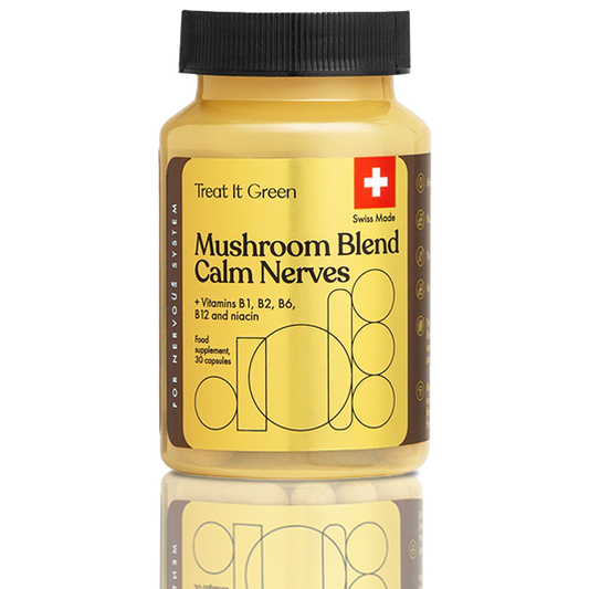 Mushroom Blend Calm Nerves pakuotėje yra 30 kapsulių, o tai sudaro 1 mėnesio kursą. Kapsules vartoti rekomenduojame kasdien, 1 kapsulę užgeriant stikline vandens. Prieš vartojant šį arba bet kurį kitą maisto papildą rekomenduojame pasikonsultuoti su savo šeimos gydytoju.